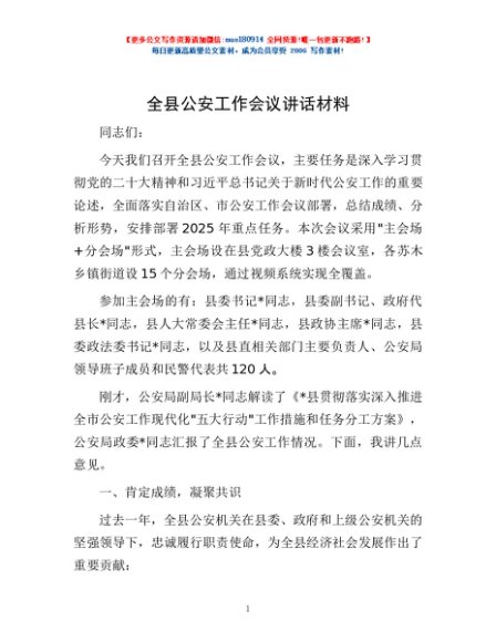 / 全县公安工作会议讲话材料
