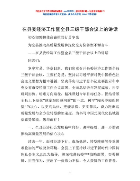 / 在县委经济工作暨全县三级干部会议上的讲话