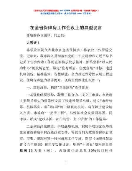 / 在全省保障房工作会议上的典型发言
