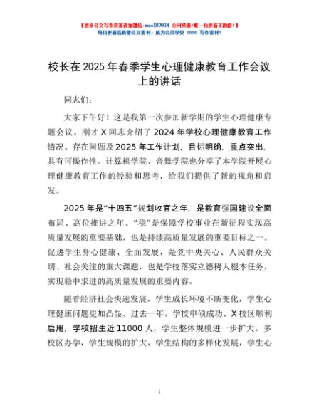 / 校长在2025年春季学生心理健康教育工作会议上的讲话