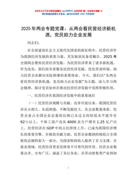 2025年两会专题党课:从两会看民营经济新机遇,党员助力企业发展