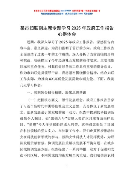 / 某市妇联副主席专题学习2025年政府工作报告心得体会