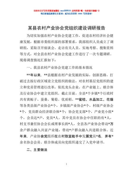 / 某县农村产业协会党组织建设调研报告
