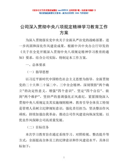/ 公司深入贯彻中央八项规定精神学习教育工作方案