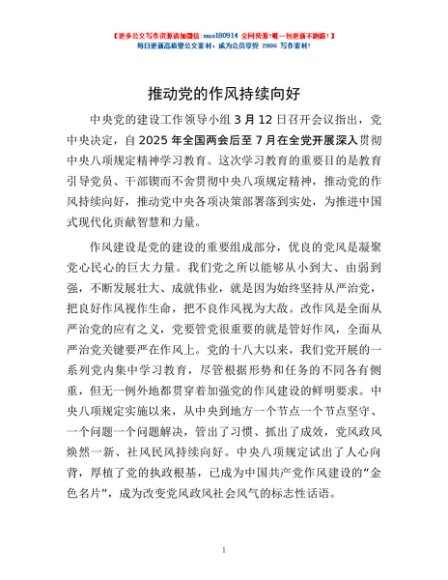 / 推动党的作风持续向好
