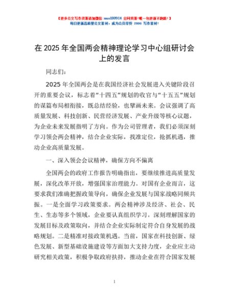 / 在2025年全国两会精神理论学习中心组研讨会上的发言