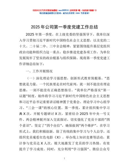 2025年公司第一季度党建工作总结