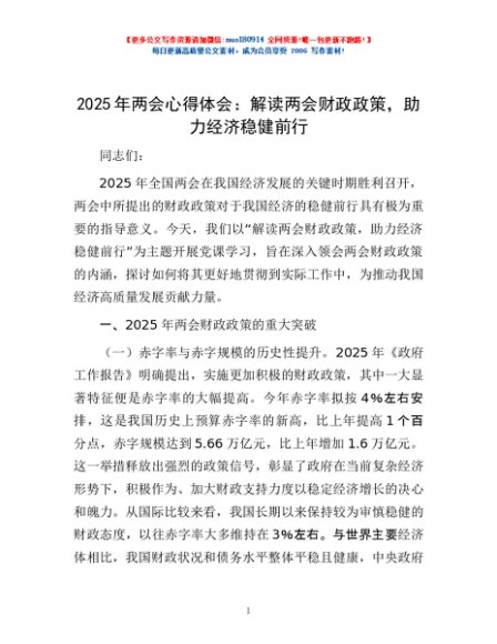/ 2025年两会心得体会:解读两会财政政策,助力经济稳健前行