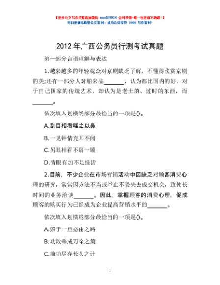 / 2012年广西公务员行测考试真题