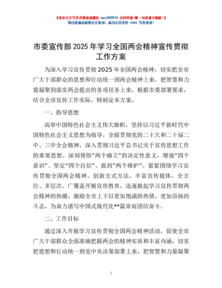 / 市委宣传部2025年学习全国两会精神宣传贯彻工作方案