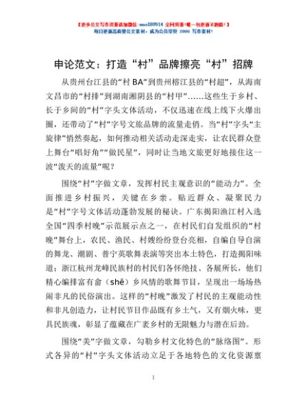 / 申论范文:打造“村”品牌 擦亮“村”招牌