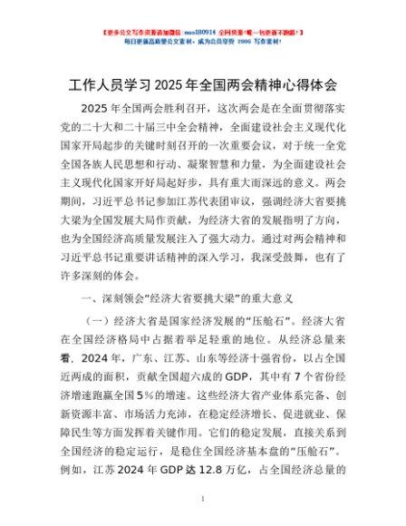 工作人员学习2025年全国两会精神心得体会