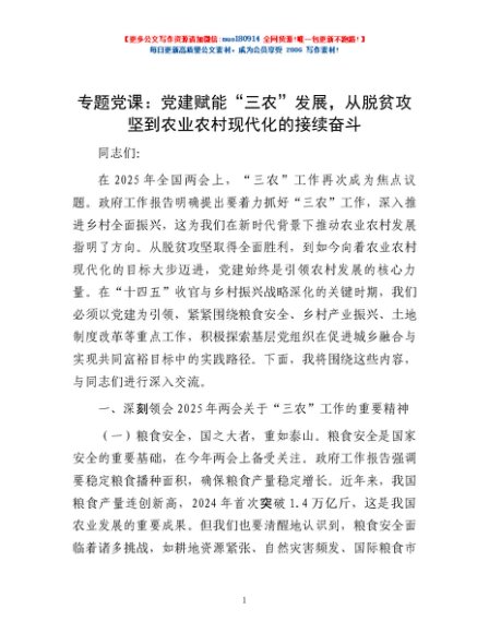 专题党课:党建赋能“三农”发展,从脱贫攻坚到农业农村现代化的接续奋斗