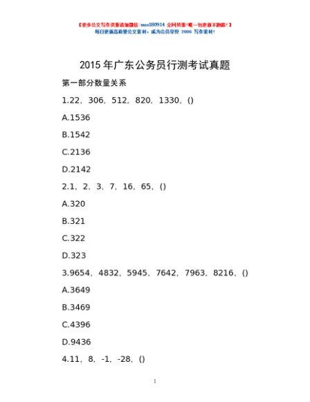/ 2015年广东公务员行测考试真题