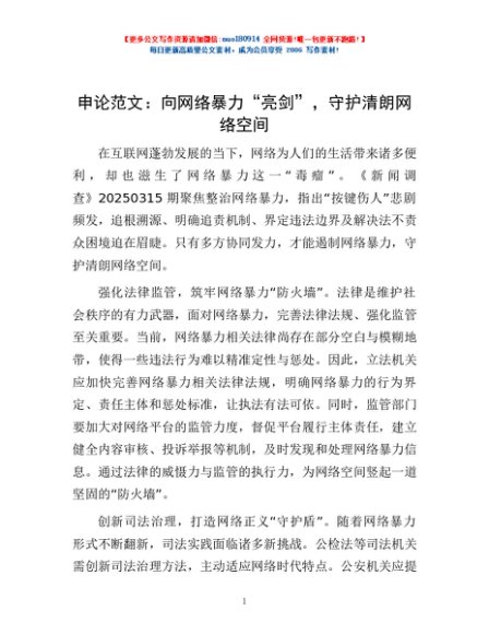 申论范文:向网络暴力“亮剑”,守护清朗网络空间