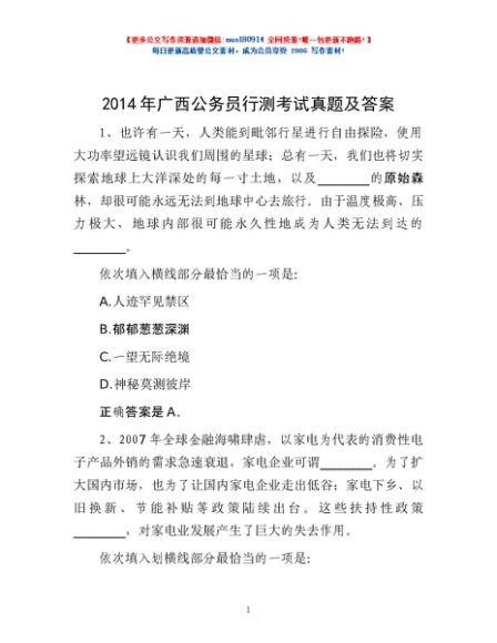 / 2014年广西公务员行测考试真题及答案