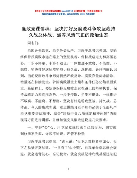 / 廉政党课讲稿:坚决打好反腐败斗争攻坚战持久战总体战,涵养风清气正的政治生态