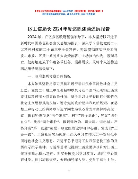 / 区工信局长2024年度述职述德述廉报告