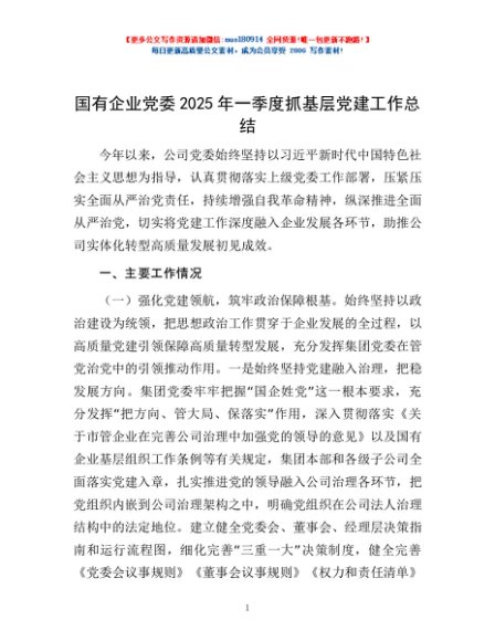 / 国有企业党委2025年一季度抓基层党建工作总结