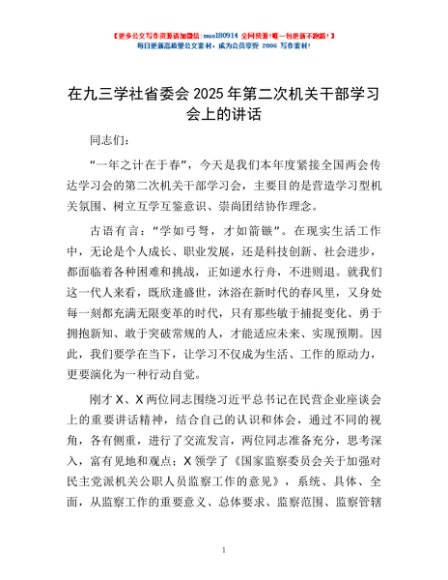 / 在九三学社省委会2025年第二次机关干部学习会上的讲话
