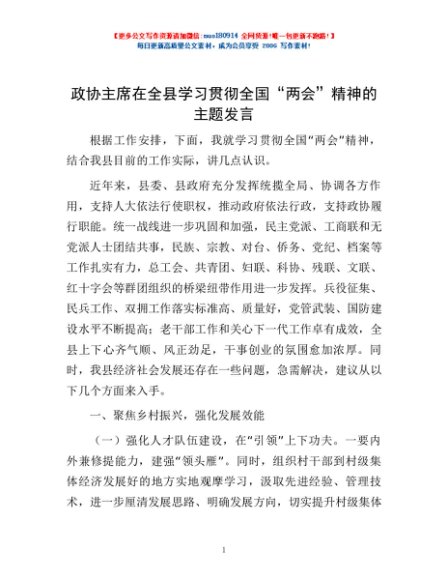 / 政协主席在全县学习贯彻全国“两会”精神的主题发言