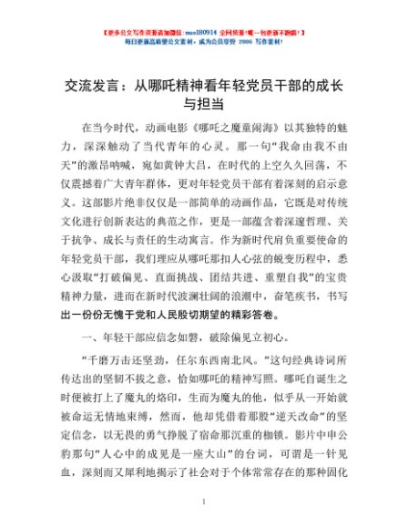 交流发言:从哪吒精神看年轻党员干部的成长与担当