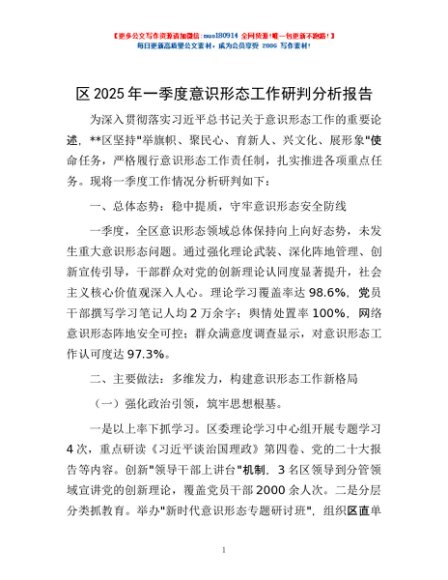 / 区2025年一季度意识形态工作研判分析报告