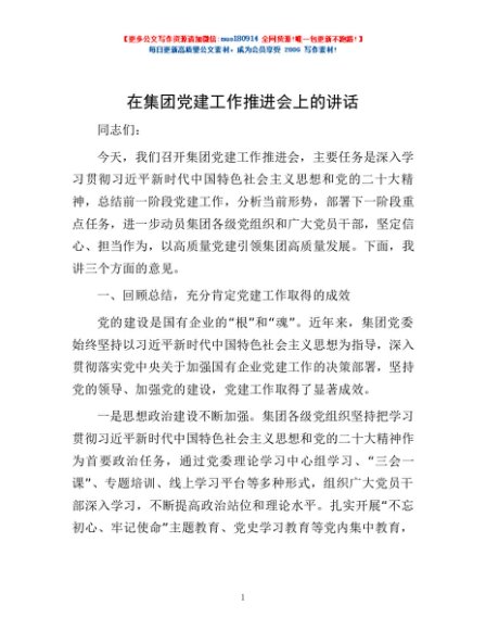 / 在集团党建工作推进会上的讲话