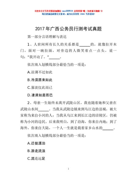 / 2017年广西公务员行测考试真题