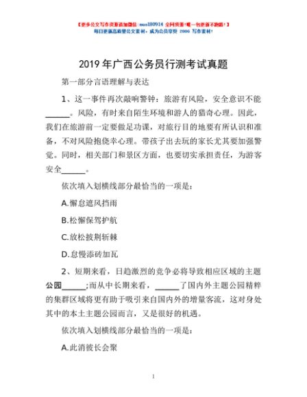 / 2019年广西公务员行测考试真题