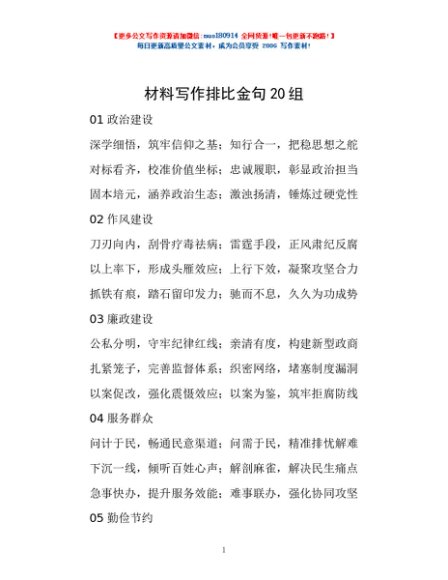 / 材料写作排比金句20组