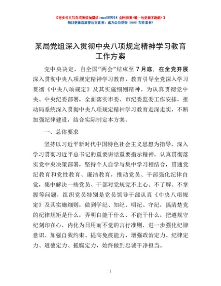 / 某局党组深入贯彻中央八项规定精神学习教育工作方案