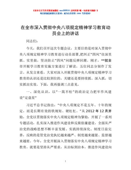 / 在全市深入贯彻中央八项规定精神学习教育动员会上的讲话 (2)