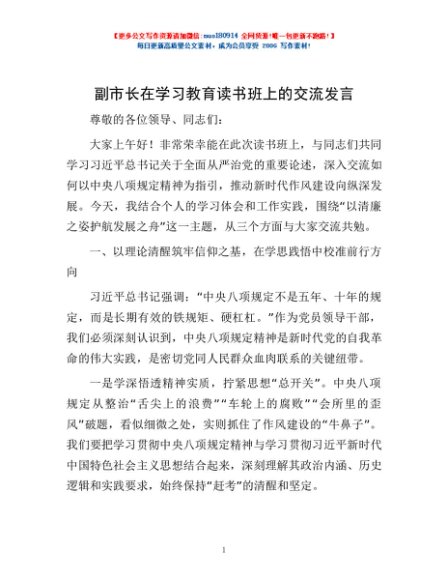 / 副市长在学习教育读书班上的交流发言