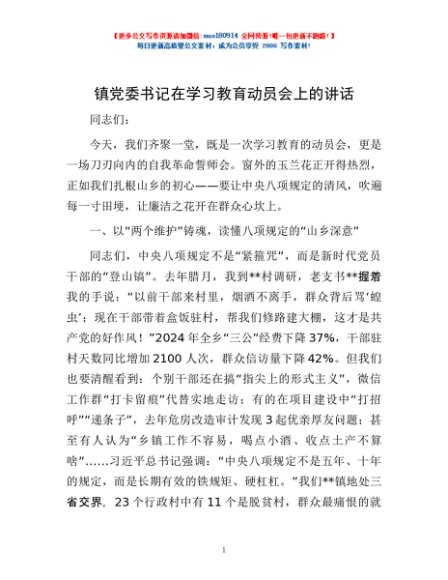 / 镇党委书记在学习教育动员会上的讲话