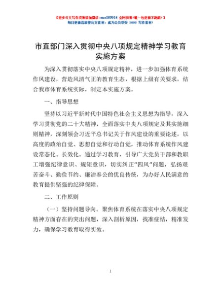 / 市直部门深入贯彻中央八项规定精神学习教育实施方案