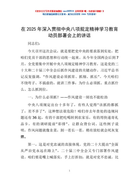 / 在2025年深入贯彻中央八项规定精神学习教育动员部署会上的讲话