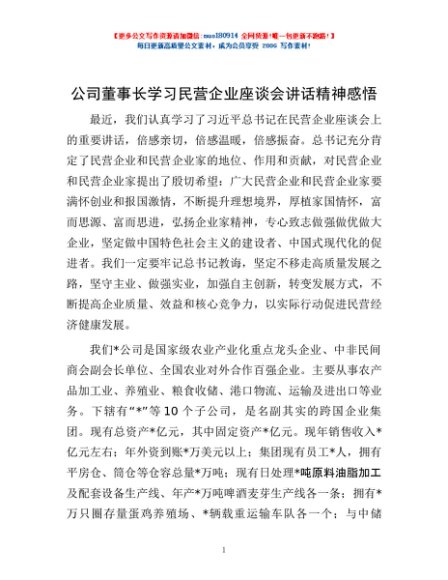 / 公司董事长学习民营企业座谈会讲话精神感悟