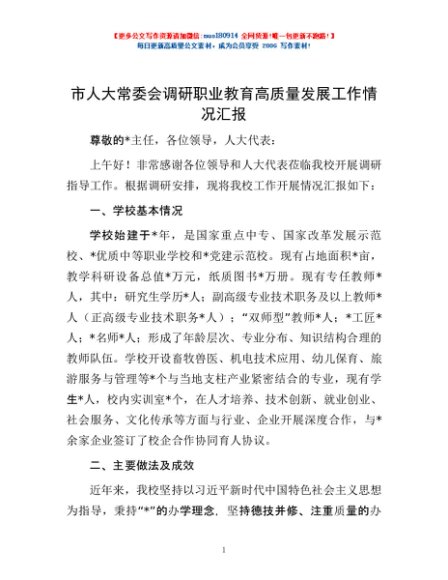 市人大常委会调研职业教育高质量发展工作情况汇报
