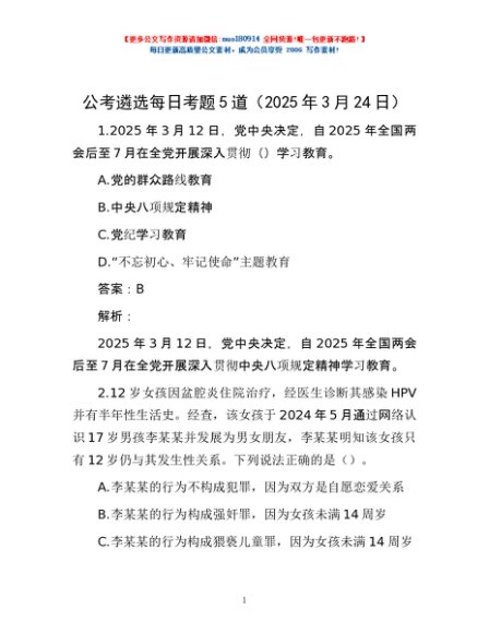 / 公考遴选每日考题5道(2025年3月24日)