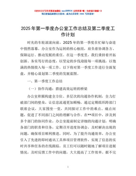 2025年第一季度办公室工作总结及第二季度工作计划