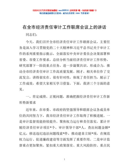 / 在全市经济责任审计工作联席会议上的讲话
