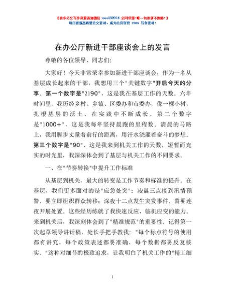 / 在办公厅新进干部座谈会上的发言