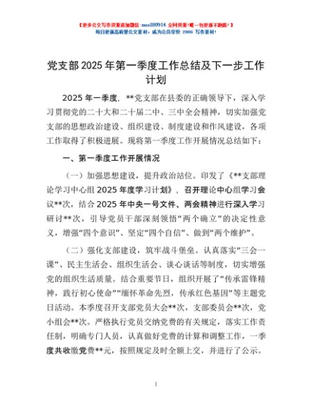 / 党支部2025年第一季度工作总结及下一步工作计划
