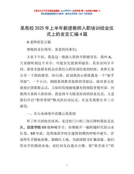 / 某高校2025年上半年新进教师入职培训结业仪式上的发言汇编4篇