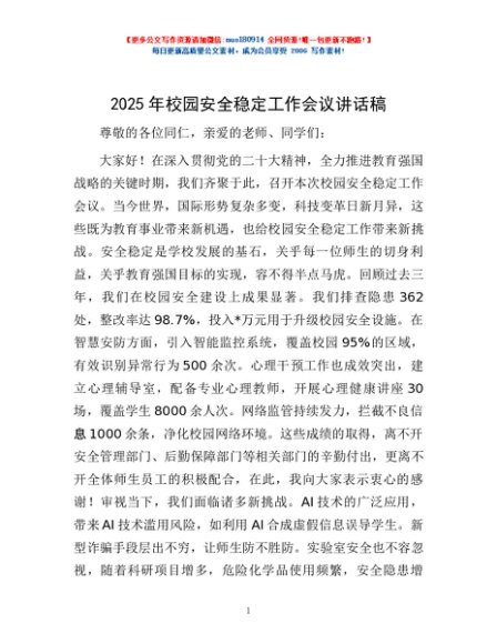 / 2025年校园安全稳定工作会议讲话稿
