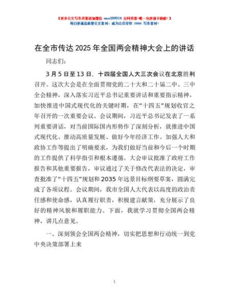 / 在全市传达2025年全国两会精神大会上的讲话