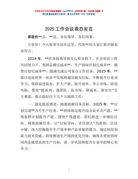 / 2025工作会议表态发言