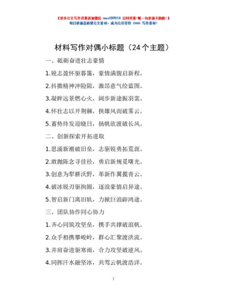 / 材料写作对偶小标题(24个主题)