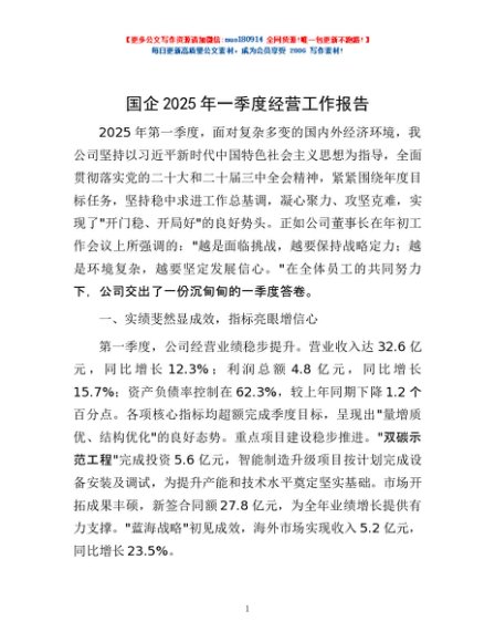 / 国企2025年一季度经营工作报告